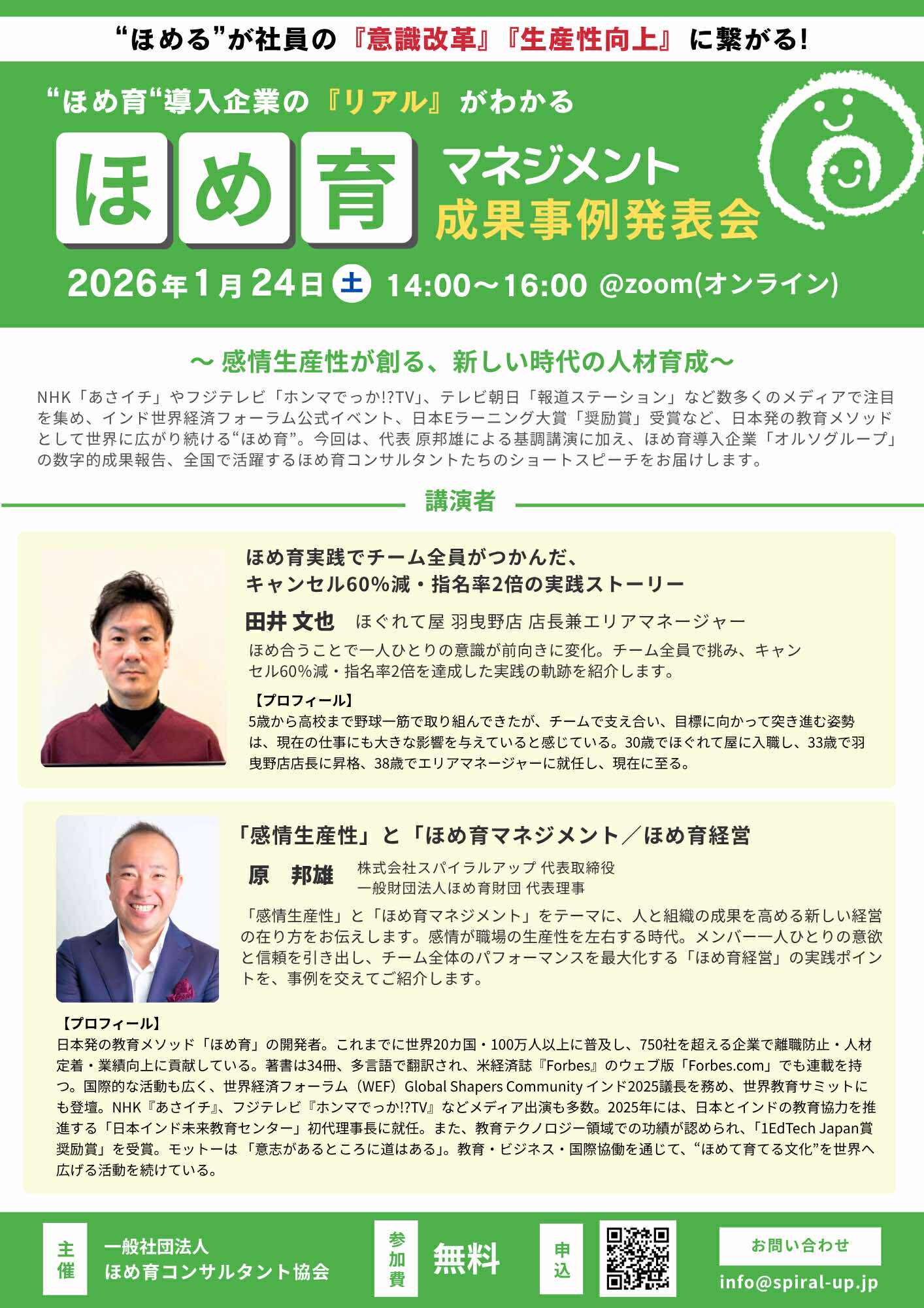 【お知らせ】2026年1月24日「第9回ほめ育マネジメント成果事例発表会」開催 |